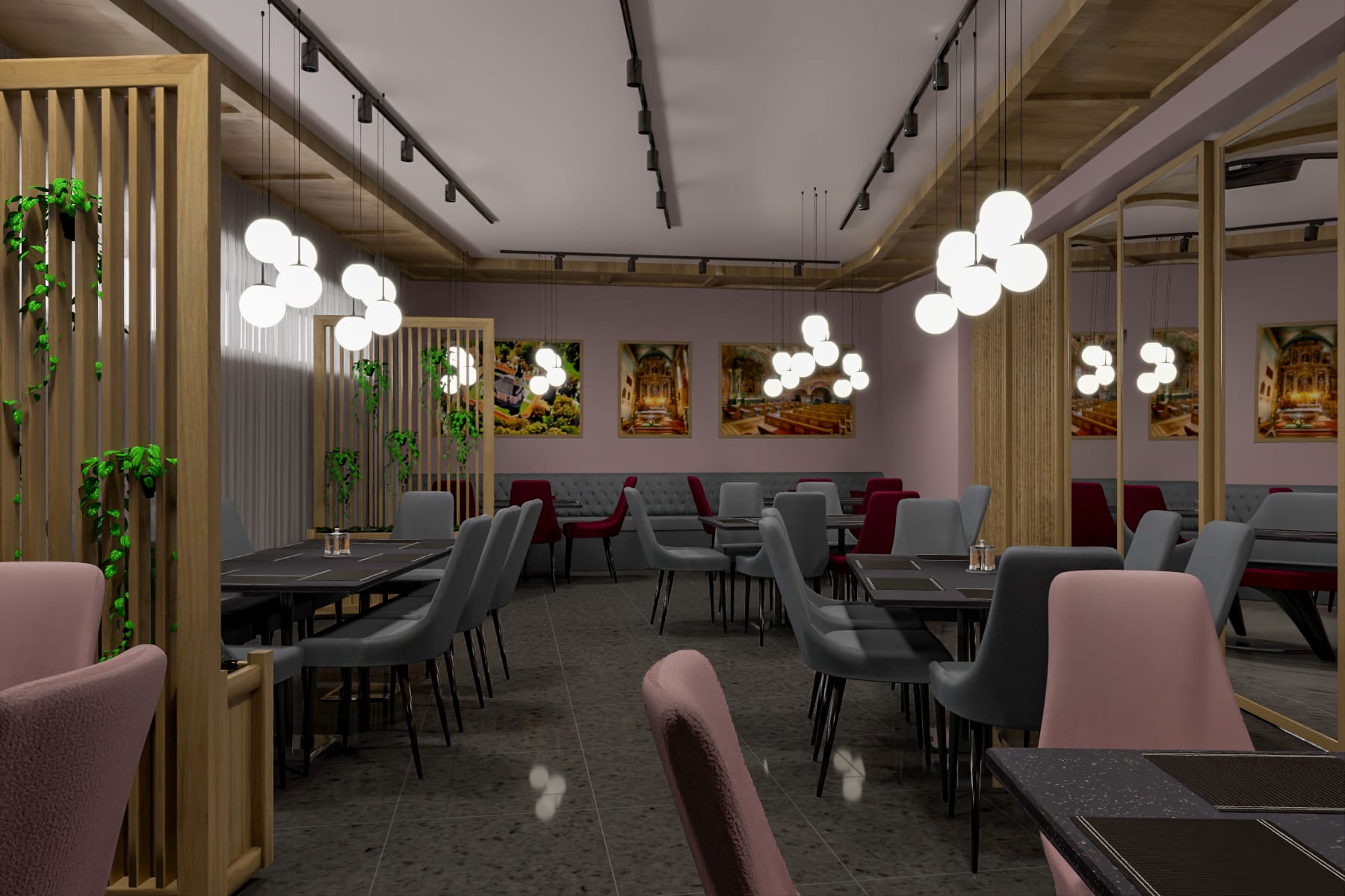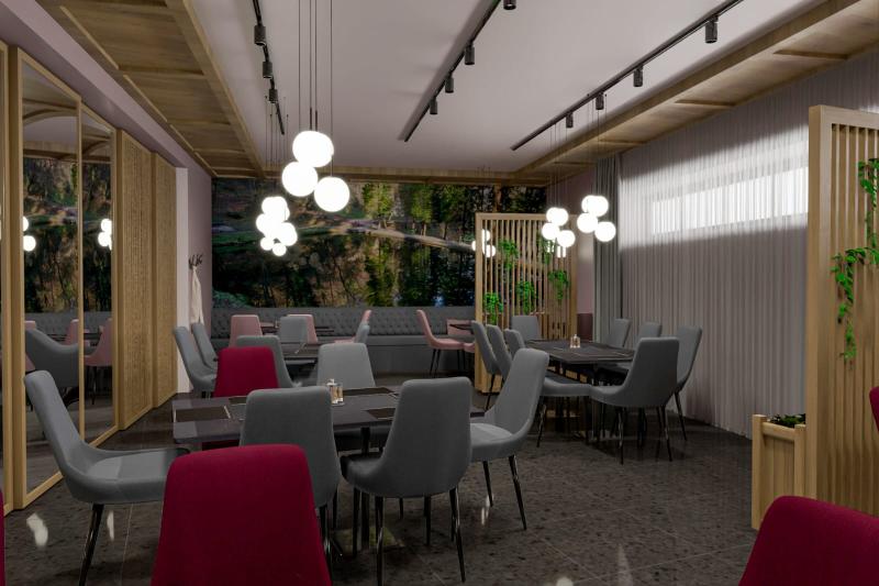 Separei, zavjese, dekori i većina stolaca održani su u sivo-bež paleti koja je istovremeno sofisticirana i neutralna.
